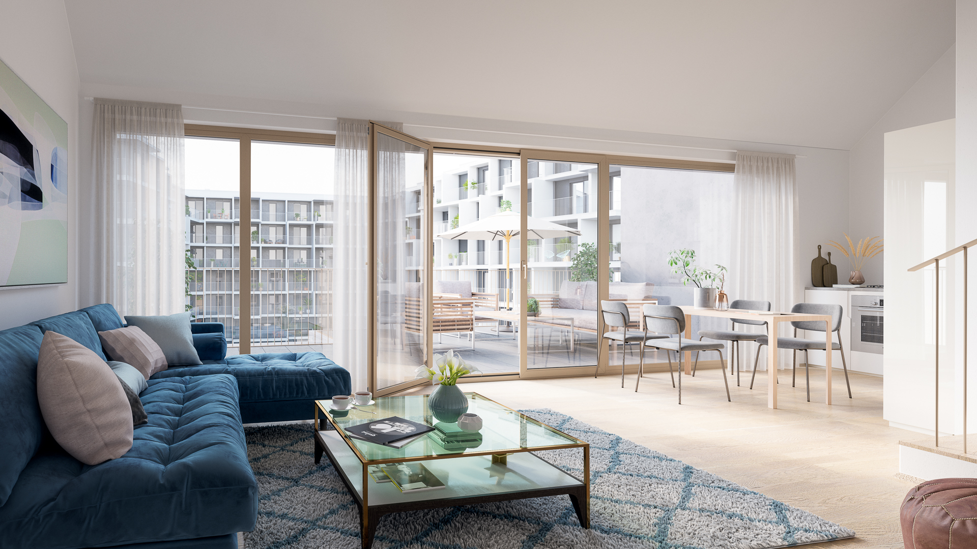 Die 512 Wohnungen teilen sich in freifinanzierte Eigentums- und Mietwohnungen sowie Mietwohnungen gemäß Wiener Wohnbauinitiative. Verbindendes Element ist der großzügige weitläufige Garten. Die beiden Mietobjekte inkl. zugehöriger Garage werden im Herbst 2022 fertiggestellt und übergeben, die restlichen vier Bauteile inkl. Tiefgarage werden Ende 2022 fertiggestellt.