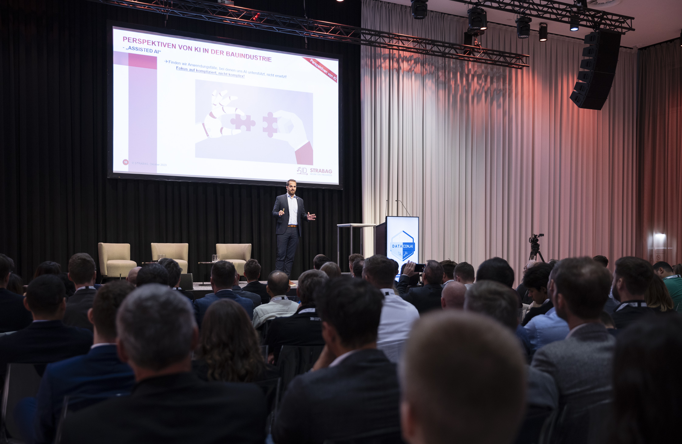 Die DataCon.AI Konferenz fand dieses Jahr zum zweiten Mal ausgerichtet von STRABAG und Rhomberg statt. Der Fokus liegt auf der Anwendung von künstlicher Intelligenz in der Baubranche. Sie bietet eine Plattform für Expert:innen, Fachleute und Visionär:innen, um aktuelle Trends, Innovationen und Best Practices zu teilen, die die Zukunft des Bauwesens gestalten.