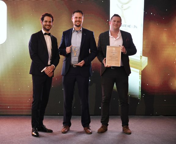 Das Health Management der STRABAG-Gruppe Deutschland hat beim Corporate Health Award 2022 den Sonderpreis für Zielgruppenspezifität gewonnen. Johannes Burchard, Teamleiter des STRABAG Health Managements und Niklas Magerl, Koordinator im STRABAG Health Management Deutschland, nahmen die Auszeichnung am 17.11. bei der Preisverleihung in Königswinter entgegen.