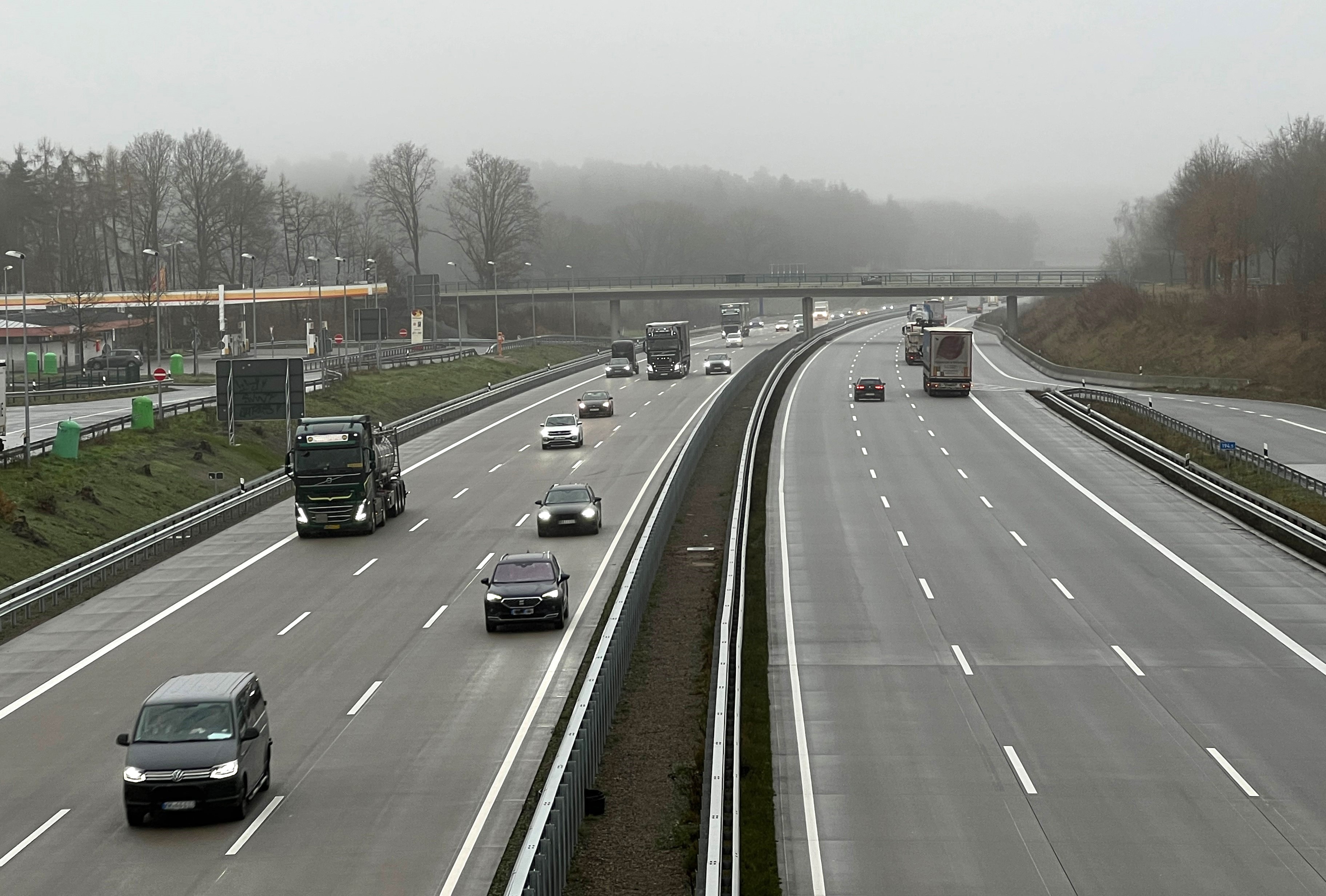 Blick aus dem Brückencafé der Tank & Rastanlage Dammer Berge: Der Verkehr fließt ab sofort zwischen Lohne/Dinklage und Bramsche sechsstreifig in beide Richtungen.