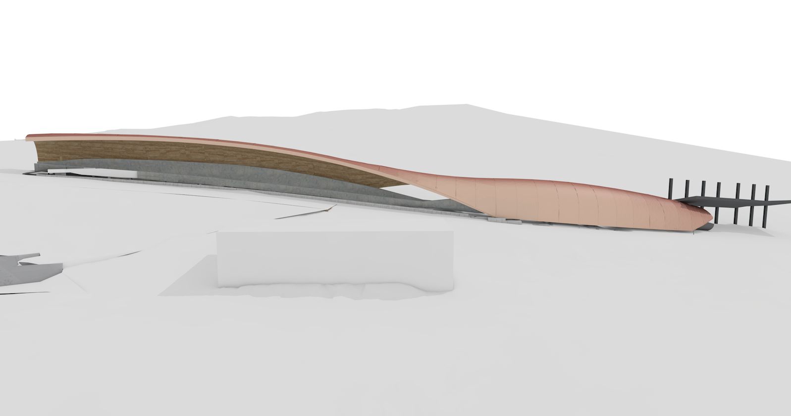 Die anspruchsvolle Rennschlittenbahn ist zu 75 % überdacht. Sie überwindet einen Höhenunterschied von knapp 100 m, hat ein Gefälle von durchschnittlich 9,2 % und führt durch 15 Kurven. ZÜBLIN Timber verantwortet die komplizierte Überdachung der Bahn von Kurve 6 bis 7 und von Kurve 11 bis 15. Die Überdachung der Anlage steht weitestgehend frei, so dass die Bahn nur wenige Stützen hat. Damit erfüllt sie modernste Ansprüche und den Wunsch von Besucherinnen und Besuchern sowie Fernsehteams nach großer Sichtfreiheit.
