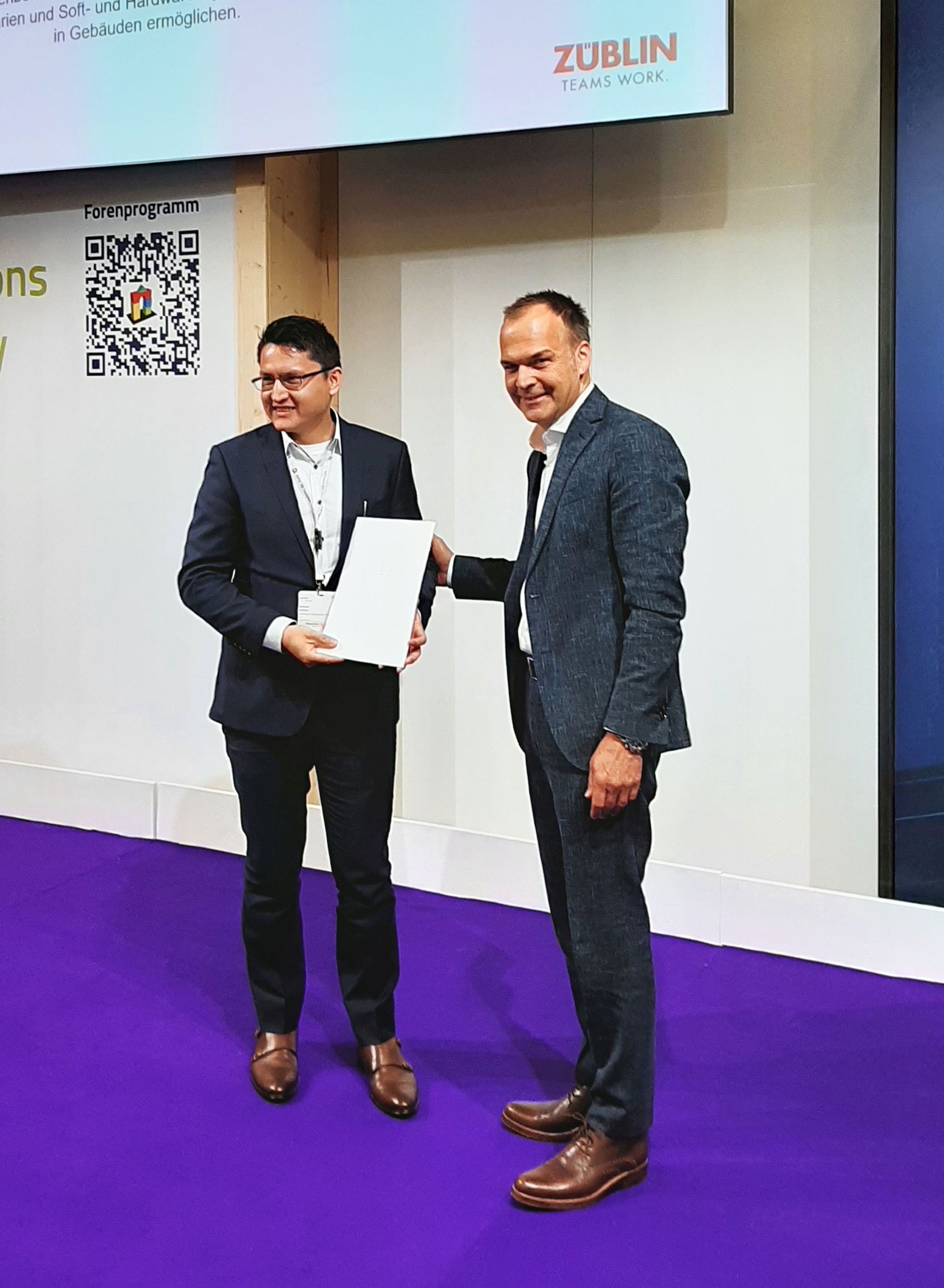 Unter dem Motto „Möglichkeiten, Perspektiven und Visionen“ fand am 1.6.2022 die Preisverleihung „Auf IT gebaut – Bauberufe mit Zukunft“ erstmals auf der digitalBau in Köln statt. Im Wettbewerb um innovative und praxisnahe Lösungen für die Bauwirtschaft verlieh das RKW-Kompetenzzentrum Preise an junge Nachwuchstalente in Deutschland. Auch die Ed. Züblin AG vergab zum achten Mal in Folge einen Sonderpreis. ZÜBLIN-Vorstand Markus Landgraf würdigte Abduaziz Juraboev, Student an der Technischen Hochschule Mittelhessen, für seine herausragende Masterarbeit „Implementierung von RFID und drahtlose IoT-Technologien in BIM-Bauwerksmodellen“.
