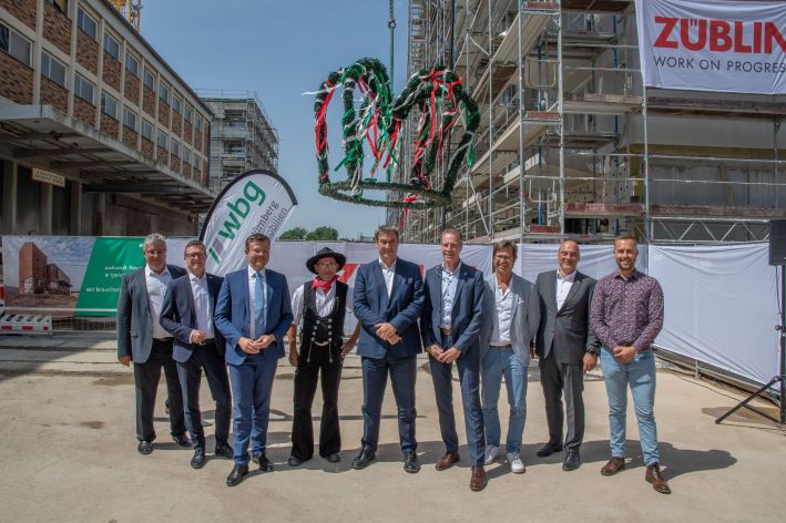 „Ich bin der wbg Unternehmensgruppe sehr dankbar, dass sie zur Erweiterung des Wohnungsangebotes in unserer Stadt hier fast 200 geförderte und dadurch preisgünstige Mietwohnungen errichtet. Diese Wohnungen werden dringend benötigt und leisten einen Beitrag zur Verringerung des Wohnungsmangels,“ freut sich der Vorsitzende der Aufsichtsräte der wbg Unternehmensgruppe, Oberbürgermeister Marcus König, aus Anlass des Richtfestes.