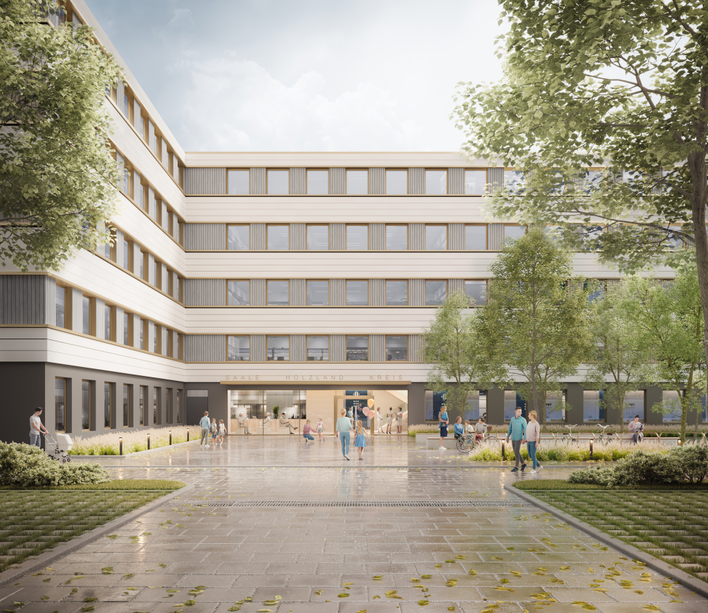 ZÜBLIN erhält mit der Planung und dem Bau des neuen Dienstleistungszentrum Eisenberg einen Großauftrag mit der innovativen Holz-Hybrid Bauweise MOLENO®. Das neue Dienstleistungszentrum entsteht im Auftrag des Saale-Holzland-Kreises in Eisenberg. Das Bauprojekt mit einem Volumen von rund 30 Millionen Euro umfasst den Bau eines 4- bis 5-geschossigen Gebäudes mit einer Bruttogeschossfläche von ca. 9.100 Quadratmetern. Das Dienstleistungszentrum wird schlüsselfertig inklusive der Möblierung übergeben. Neben dem Hauptgebäude werden auch umfangreiche Außenanlagen realisiert, die das Gesamtbild des Projekts abrunden.