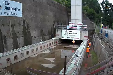 The bridge was moved with the help of 24 hydraulic jacks - four on each of the six piers. To enable the load, which weighed several tons, to be moved, Teflon plates, which act as sliding pads, were installed between the specially prepared shifting tracks and the foundation base over the past few weeks. In order to reduce frictional resistance to a minimum, the plates were pre-treated with special grease. The slabs were moved in a total of 15 sections. The colossus moved forward 1.40 meters per section.